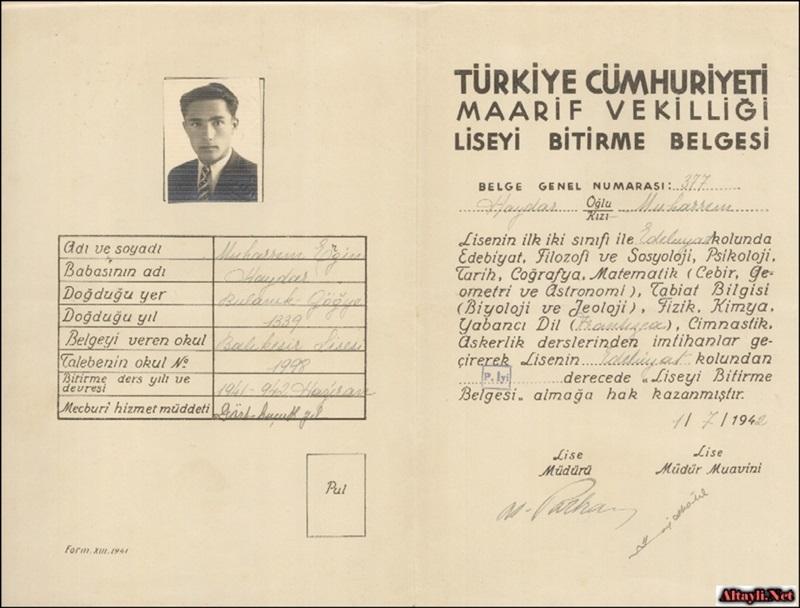 ♦ 1941-1942 (Haziran) – Balıkesir Lisesi Edebiyat kolundan 1998 okul numarası ile ‘Pekiyi’ derece ile mezuniyet.